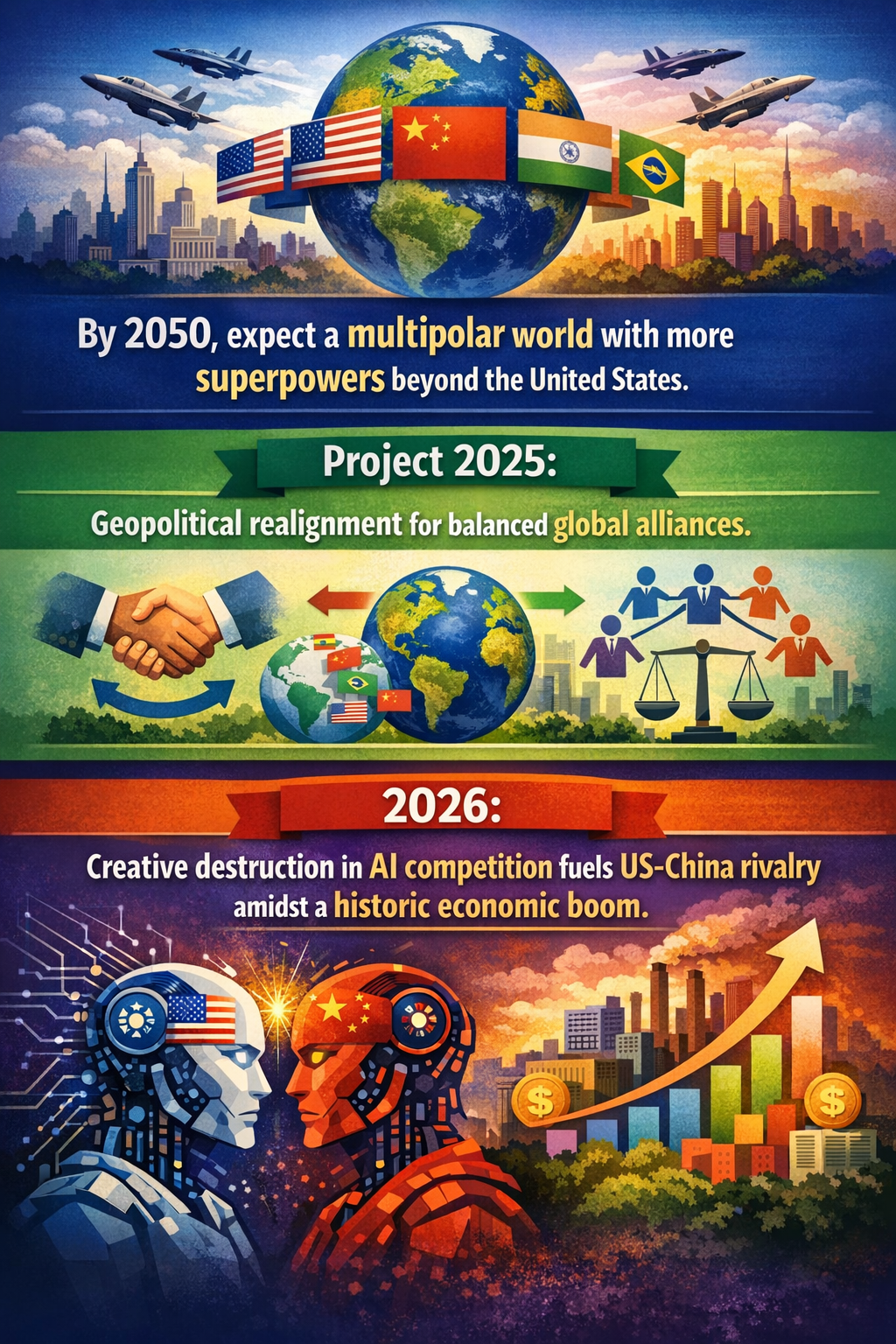 - Shifting Global Power Dynamics: Technology-driven multipolarity may lead to new geopolitical alignments influencing trade, investment, security, and international cooperation. Recognizing this beforehand could protect national interests and stimulate partnerships.
