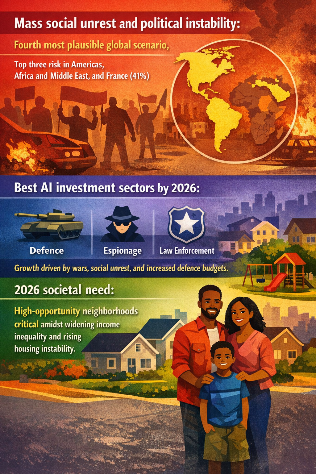- Mass social unrest and political instability is regarded as the fourth most plausible scenario globally and is a top three risk in the Americas and Africa and the Middle East (41%) regions, as well as in France, for example. European Business Magazine. Published 18/11/2025.