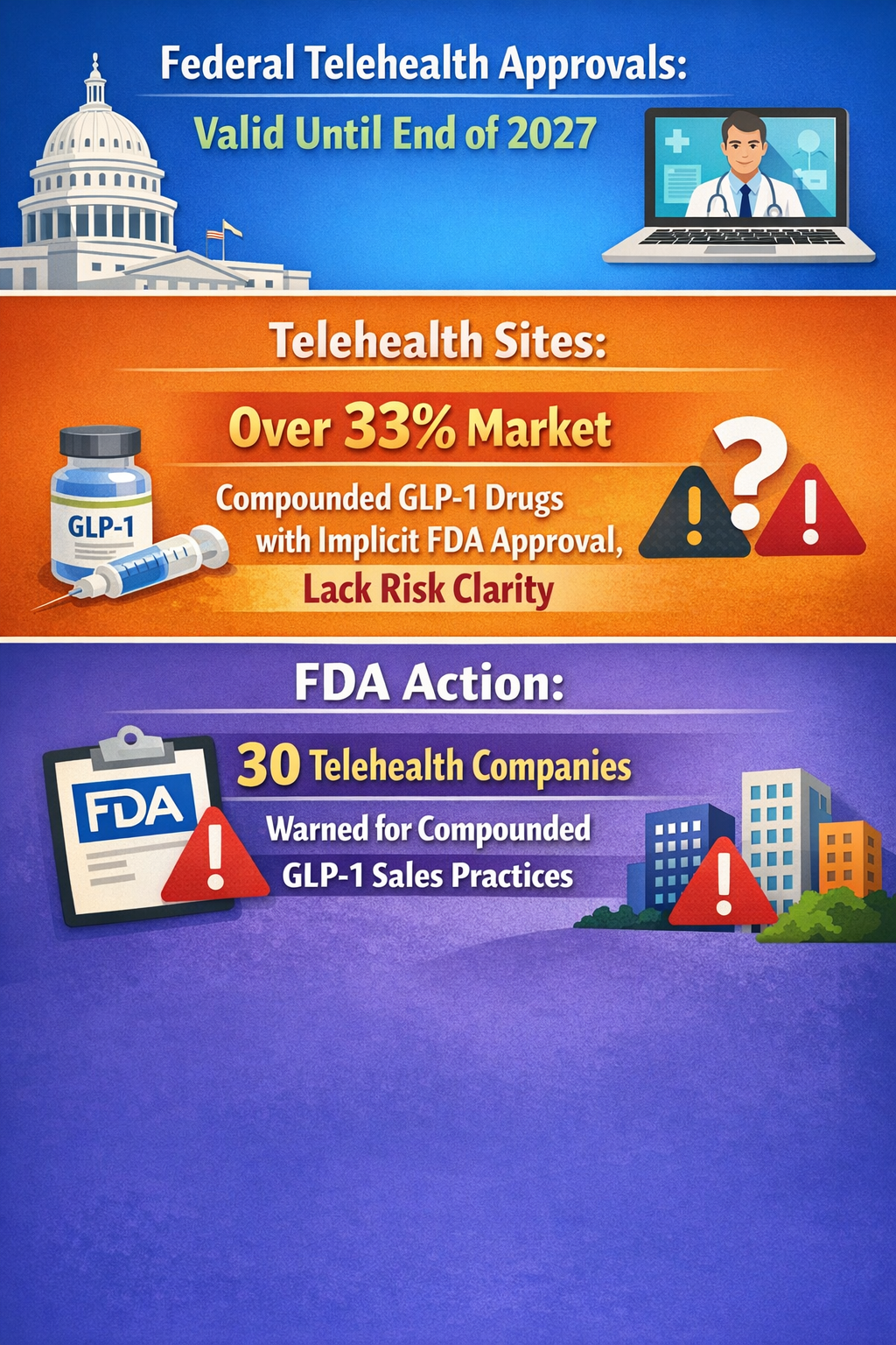 - Regulatory reversals or restrictive telehealth reimbursement cutbacks