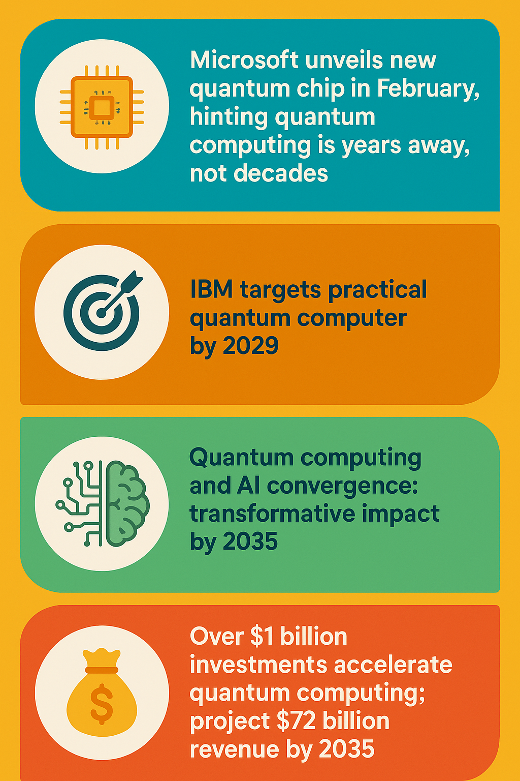 - In February, Microsoft unveiled a new chip that it said showed quantum computing is years, not decades away, while IBM in June said it plans to have a practical quantum computer by 2029. WHTC